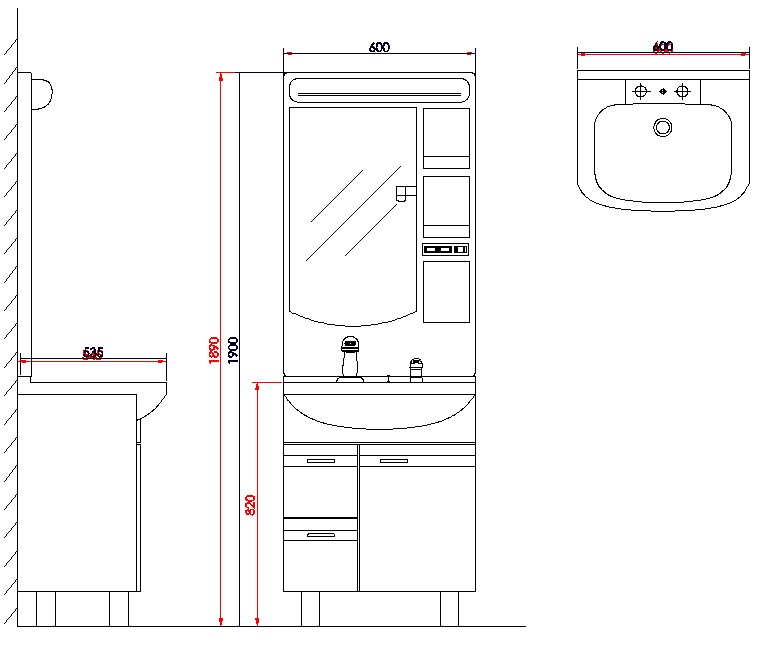 主要配件: 1. 220V/18W 照明燈 2. 220V/25W 防霧鏡 3. ABS 防水鏡柜 4. PVC 經(jīng)典門板 5. PVC 全防水柜體 6. 標準三節(jié)滑軌 7. 液壓門鉸 8. 120MM 鋁圓腳 9. 陶瓷盆 10. 抽拉龍頭(標配N1龍頭) 11. 按鈕下水 |