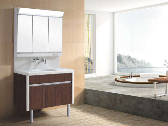 型號:RF100M ITEM NO.:RF100M 防霧鏡:JA100B 100x19x86 浴室柜:RF100M 100*52*82 人造石玉石盆:RF100 三孔 |