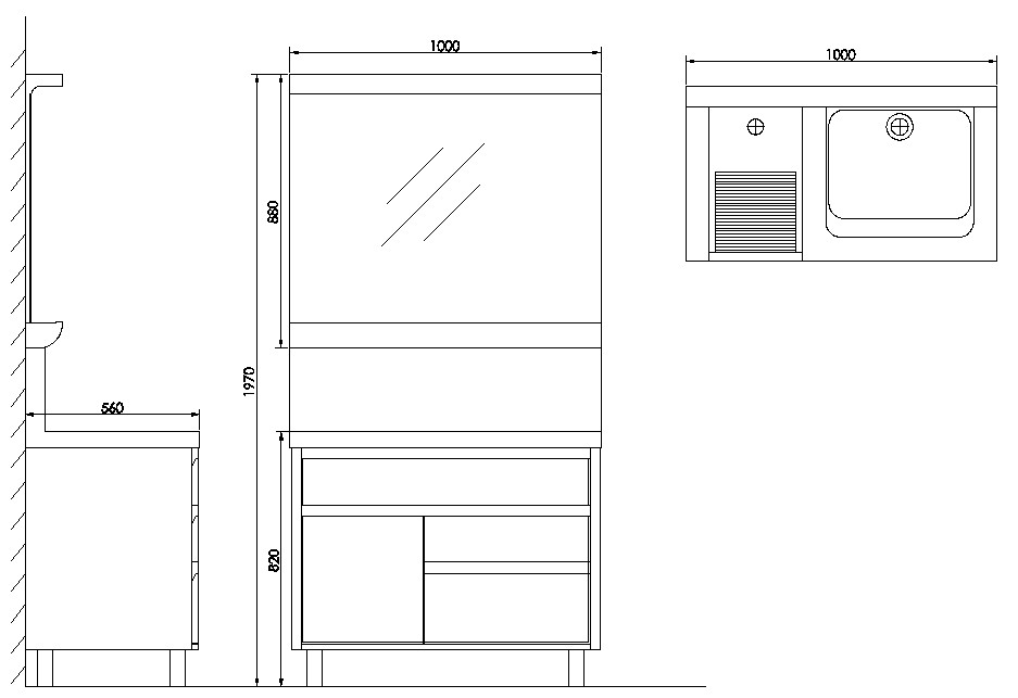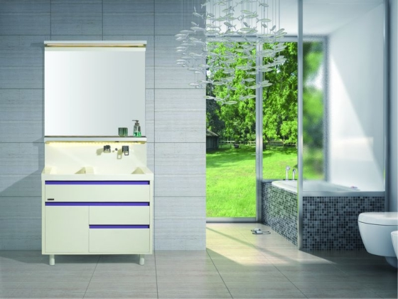 主要配件: 1.220V/19W LED照明燈 2.不銹鋼燈罩 3.不銹鋼底托帶裝飾燈帶 4.帶搓衣板盆 5..PVC 全防水柜體 6.PVC 浴室柜門板 7.暗藏式拉手 8.液壓門鉸 9.三節(jié)式滑軌 10.120MM可調(diào)節(jié)鋁方腳 11.H型人造石墻排盆(雙孔) |