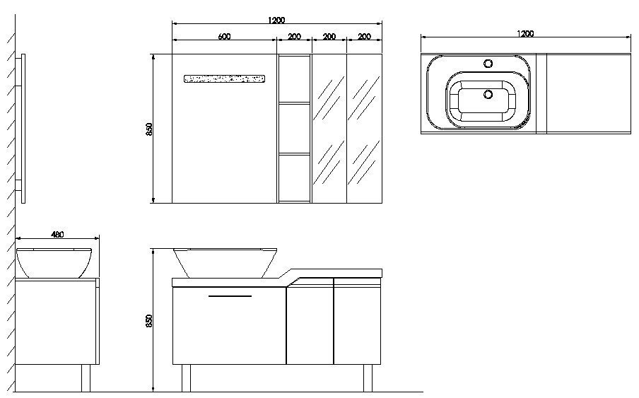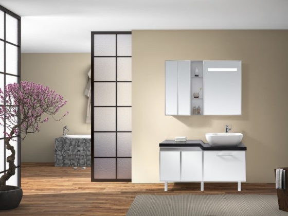 主要配件: 1. 5mm鍍銀蒙砂鏡片 2. PVC背板 3. 鋁合金包邊 4. LED節(jié)能燈帶 5. 2mm鍍銀鏡片 6. PVC鏡箱 7. 內(nèi)置物架/鋁合金包邊 8. 梯形式PVC置物架/水晶板底面 9. PVC柜體, 水晶門板/可活動(dòng)式隔板 10. 緩沖鉸鏈 11. 靜音阻尼式滑軌 12. 可調(diào)式160mm圓柜腳 13. N型人造石臺(tái)/可左右盆互換 |