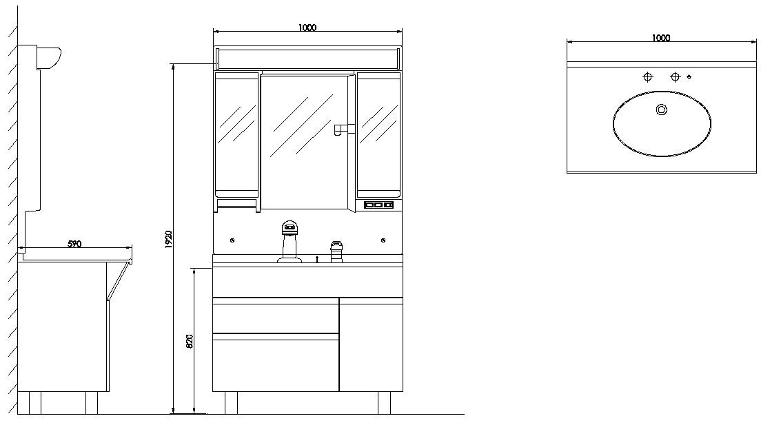 主要配件: 1. ABS鏡架 2. 25W防霧鏡 3. 20W鏡前燈 4. 鏡內(nèi)置物架/電源插座 5. PVC柜體/水晶門板 6. 鋁合金暗藏拉手 7. 緩沖門鉸 8. 靜音阻尼滑軌 9. 可調(diào)方柜腳 10.人造石臺(tái)面(不含盆) |